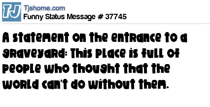 X is A statement on the entrance to a graveyard: This place is full of people who thought that the world can't do without them.
