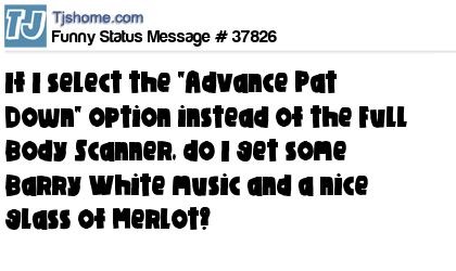 X says If I select the "Advance Pat Down" option instead of the Full Body Scanner, do I get some Barry White music and a nice glass of Merlot?