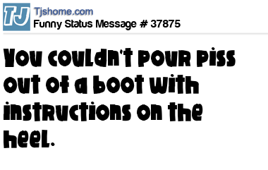 - # 22315 boy you couldnt pour piss out of a boot if the instructions was on the heel!!!