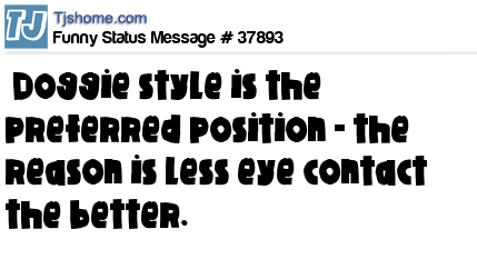 - # 19180 -- The most used sexual position for married couples is the doggie position... The husband sits and begs for it while the wife rolls over and plays dead.