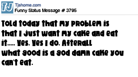 - # 9231 hates when people say "Oh you just want to have your cake and eat it too". Damn Right! What good is cake if you can't eat it?