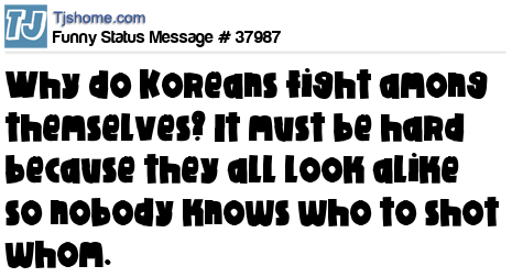 X is Why do Koreans fight among themselves? It must be hard because they all look alike so nobody knows who to shot whom.