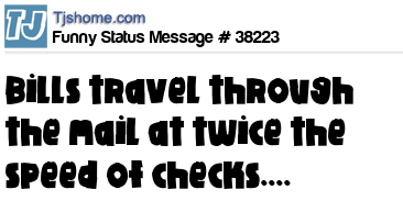 - # 44744 figured out that bills travel through the mail at twice the speed of checks