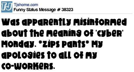 X was apparently misinformed about the meaning of 'cyber' Monday. *zips pants* My apologies to all of my co-workers.