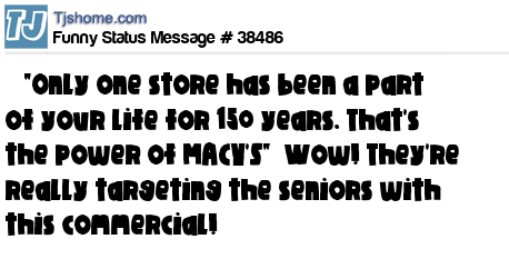 X "Only one store has been a part of your life for 150 years. That's the power of MACY'S" Wow! They're really targeting the seniors with this commercial!