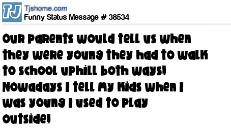 X says Our parents would tell us when they were young they had to walk to school uphill both ways! Nowadays I tell my kids when I was young I used to play outside!