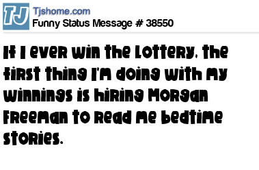 X If I ever win the lottery, the first thing I'm doing with my winnings is hiring Morgan Freeman to read me bedtime stories.