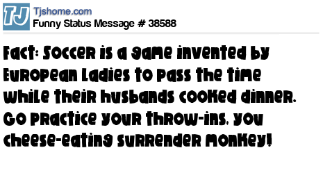 X Fact: Soccer is a game invented by European ladies to pass the time while their husbands cooked dinner. Go practice your throw-ins, you cheese-eating surrender monkey!