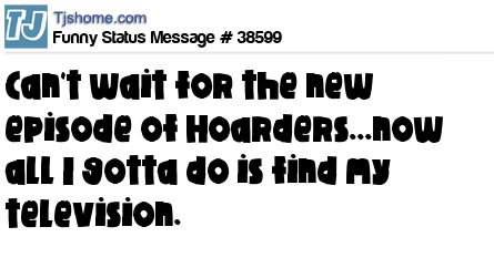 X Can't wait for the new episode of Hoarders...now all I gotta do is find my television.