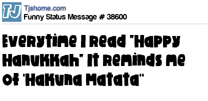 - # 38603 Everytime I read "Happy Hanukkah" It reminds me of 'Hakuna Matata''