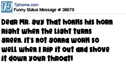 - # 62277 If you are that a$$hole that honks the second the light turns green , I'm the sumb1tch that will sit there and update my Facebook.
