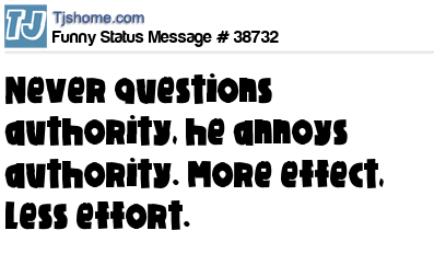 - # 179579 I no longer question authority; I annoy authority. More fun, less effort.