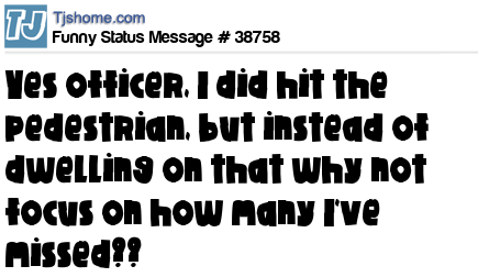 X  Yes officer, I did hit the pedestrian, but instead of dwelling on that why not focus on how many I've missed??