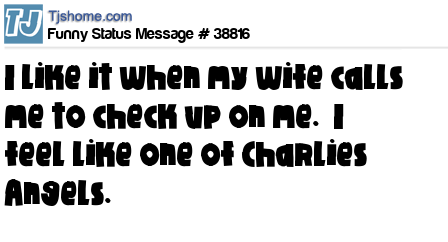 X says I like it when my wife calls me to check up on me. I feel like one of Charlies Angels.