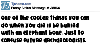 - # 51542 When I die, I want to buried with an elephant bone. Just to screw with future archiologists.