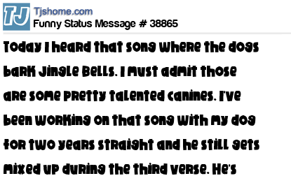 X Today I heard that song where the dogs bark Jingle Bells. I must admit those are some pretty talented canines. I've been working on that song with my dog for two years straight and he still gets mixed up during the third verse. He's not the brightest.