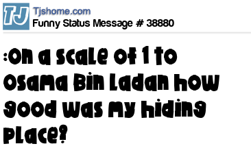 - # 96217 On a scale of 1 to Osama Bin Ladin, how good was my hiding spot??