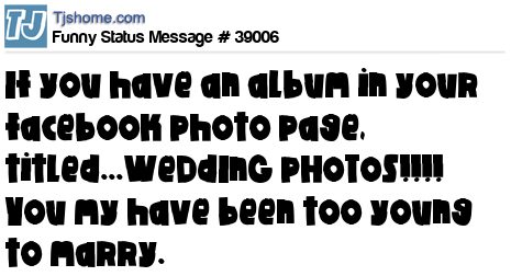 X says If you have an album in your facebook photo page, titled...WeDdInG pHoToS!!!! You my have been too young to marry.