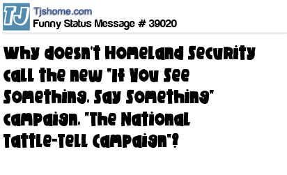 X  Why doesn't Homeland Security call the new "If You See Something, Say Something" campaign, "The National Tattle-Tell Campaign"?
