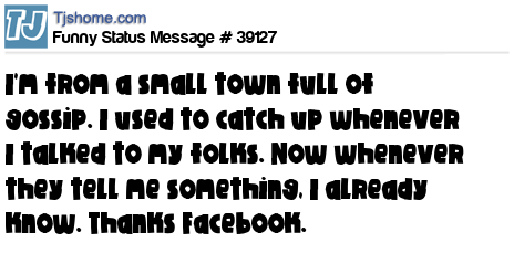 X  I'm from a small town full of gossip. I used to catch up whenever I talked to my folks. Now whenever they tell me something, I already know. Thanks Facebook.