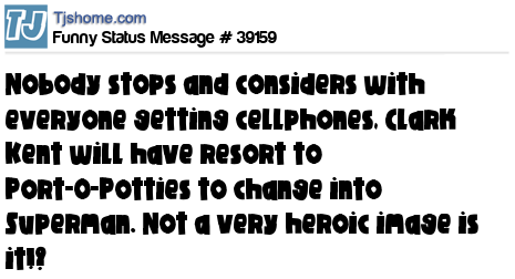 X  Nobody stops and considers with everyone getting cellphones, Clark Kent will have resort to Port-O-Potties to change into Superman. Not a very heroic image is it!?