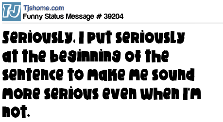 X Seriously, I put seriously at the beginning of the sentence to make me sound more serious even when I'm not.
