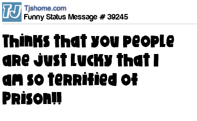 X Thinks that you people are just lucky that I am so terrified of Prison!!
