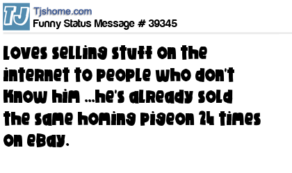 - # 122278 I love Ebay. Sold my homing pigeon 8 times last month.