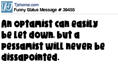 X An optamist can easily be let down, but a pessamist will never be dissapointed.