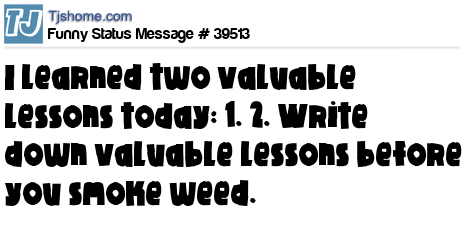 X I learned two valuable lessons today: 1. 2. Write down valuable lessons before you smoke weed.