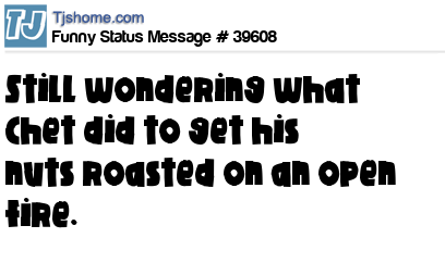 X is still wondering what Chet did to get his nuts roasted on an open fire.