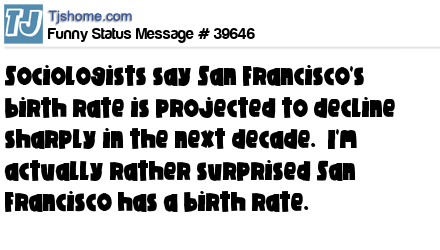 X Sociologists say San Francisco's birth rate is projected to decline sharply in the next decade. I'm actually rather surprised San Francisco has a birth rate.