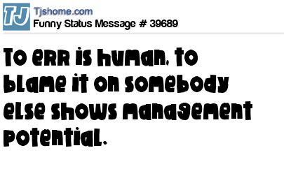 - # 130594 To err is human; to blame it on someone else shows management potential.