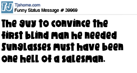 X says The guy to convince the first blind man he needed Sunglasses must have been one hell of a salesman.