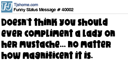 - # 202037 Never compliment a woman on her mustache, No matter How epic it is .
