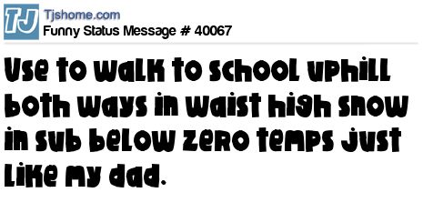 - # 38534 Our parents would tell us when they were young they had to walk to school uphill both ways! Nowadays I tell my kids when I was young I used to play outside!