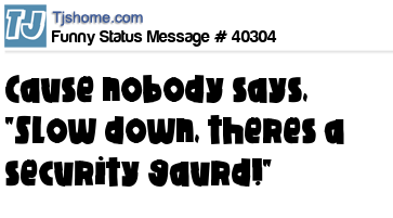 X Cause nobody says, "Slow down, theres a security gaurd!"