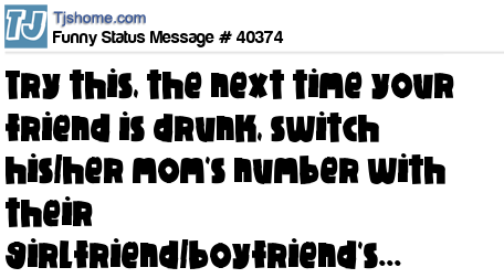 X is Try this, the next time your friend is drunk, switch his/her mom's number with their girlfriend/boyfriend's...