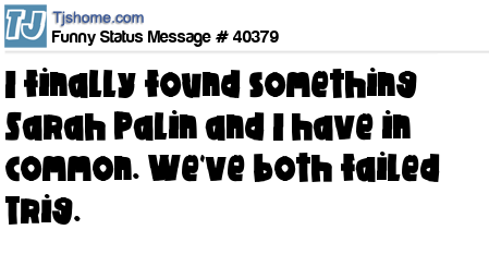 X is I finally found something Sarah Palin and I have in common. We've both failed Trig.