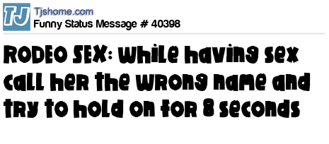 - # 164790 How To Have Rodeo Sex: 1. Mount girlfriend from behind. 2. Tell her you think her sister is HOT. 3. Hold on!