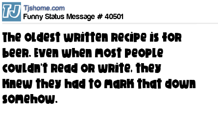 X The oldest written recipe is for beer. Even when most people couldn't read or write, they knew they had to mark that down somehow.
