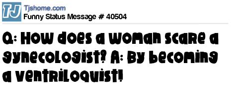 X  Q: How does a woman scare a gynecologist? A: By becoming a ventriloquist!