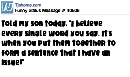 X told my son today, "I believe every single word you say. It's when you put them together to form a sentence that I have an issue!"