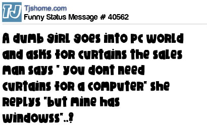 X A dumb girl goes into pc world and asks for curtains the sales man says " you dont need curtains for a computer" she replys "but mine has windowss"..?