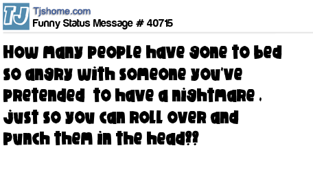 - # 12992 how many people have gone to bed so angry with someone you've pretended to have a nightmare, just so you can roll over and punch them in the head