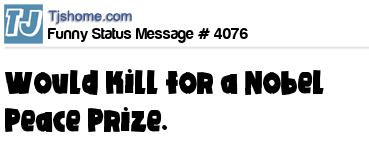 - # 136653 " OMG ... I would kill for another Nobel Peace Prize. " Barack Obama