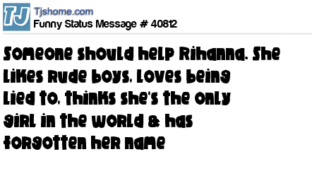 - # 39257 Someone needs to help Rihanna, she likes rude boys, loves it when people lie to her, and apparently forgot her name