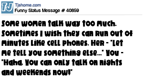 X is Some women talk way too much. Sometimes I wish they can run out of minutes like cell phones. Her - "Let me tell you something else..." You - "Haha, You can only talk on nights and weekends now!"