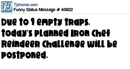 X says Due to 9 empty traps, today's planned Iron Chef Reindeer Challenge will be postponed.