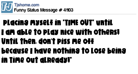 X placing myself in "TIME OUT" until I am able to play nice with others! Until then, don't piss me off because I have nothing to lose being in Time Out already!"